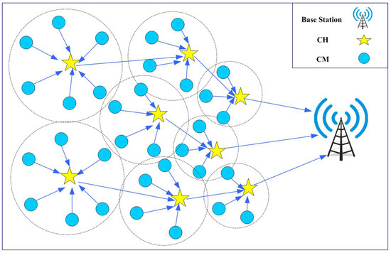 - Heinzelman, W.R.; Chandrakasan, A.; Balakrishnan, H. Energy-efficient communication protocol for wireless microsensor networks. In Proceedings of the 33rd Annual Hawaii International Conference on System Sciences, Maui, HI, USA, 7 January 2000; Volume 10. [Google Scholar]