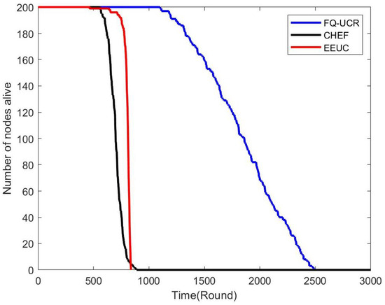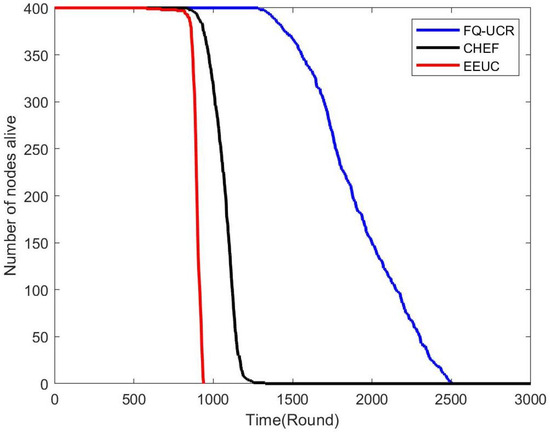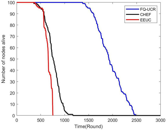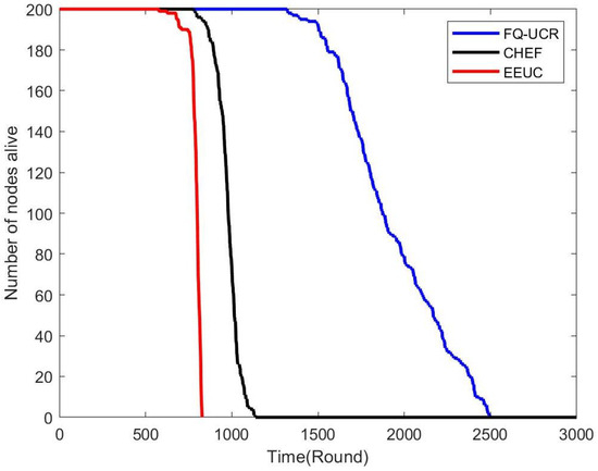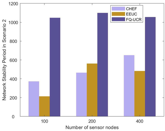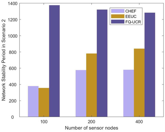 | Number of Sensor Nodes | Protocol | FND (First Node Death) | HND (Half of Nodes’ Death) | LND (Last Node Death) | Stability |