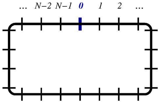 Periodic ring with N sites. Starting from an arbitrary site labelled 0, the property becomes intuitive for .