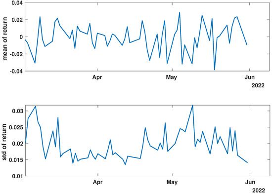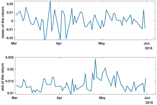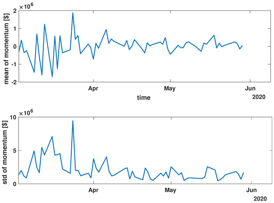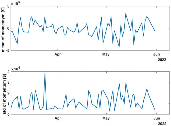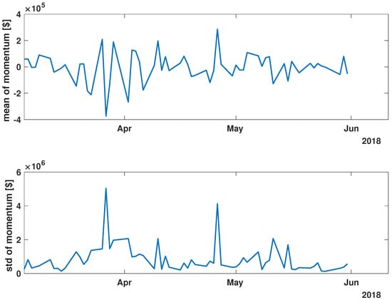 In order to present the general characteristics of the studied time series, the mean and standard deviation of the returns and momentum of the group of time series were calculated. The evolutions of the mean and standard deviation at selected time intervals are presented in Figure 3, Figure 4, Figure 5, Figure 6, Figure 7 and Figure 8.