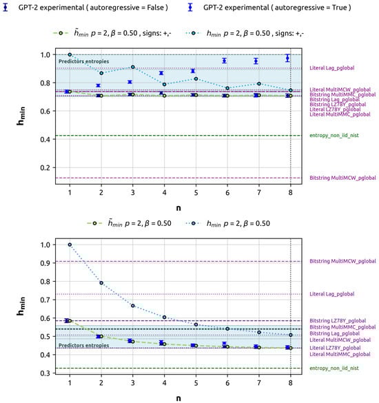 Whereas [17] concentrates on ensemble, categorical data, and numerical predictors, the focus of this paper will be on machine learning predictors. In particular, a hybrid model that integrates convolutional and recurrent long short-term memory (LSTM) layers, and the transformer-based GPT-2 model will be considered. As in [18], we generate sets of data for which a theoretical entropy can be calculated so that the machine learning entropy estimation can be compared to the theoretical value. Nevertheless, while the data generated in [18] come from an oscillator-based model and Markov processes of order at most 2, our data come from generalized binary autoregressive models [20], a subclass of Markov chains that allows us to easily parameterize correlations and anticorrelations at the bit level and compute min-entropies.
