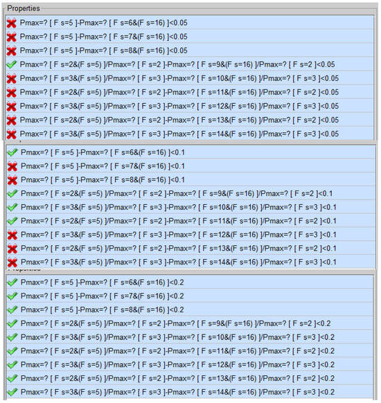 According to the definition of PCTL, it is known that the values of Formulas (9)–(12) can be solved using probabilistic model checking techniques. The probabilistic robustness of the CNN can then be specified by the PCTL formulae, which are obtained from the extension based on Formulas (9)–(12).