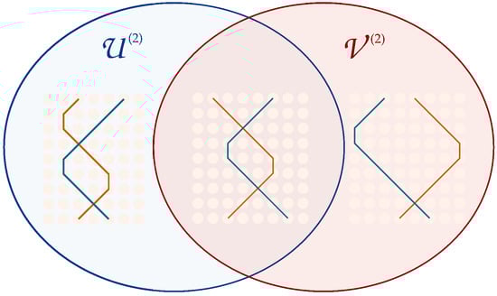 Despite the simplicity of local rules governing QCAs, the emerging behavior exhibits increasing complexity as the evolution progresses. While this is one of the general reasons why QCAs represent a valuable tool in studying complex systems, it is also the reason why their actual classification proves to be remarkably challenging [,,,]. Within the path sum approach, and given the on-site nature of Thirring interaction, the origin of the complexity here is embodied in a comprehensive classification of all possible paths based on the number of intersections that yield an interaction. Such classification requires us to take into account both the Pauli exclusion principle and the fact that the free dynamics of the QCA univocally determines the internal state of the systems at every lattice site.