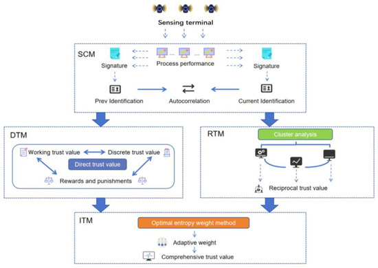 To solve these problems, this paper proposes an adaptive trust evaluation model based on the entropy weight method for the sensing terminal process (PB-ATEM). This paper makes the following contributions: