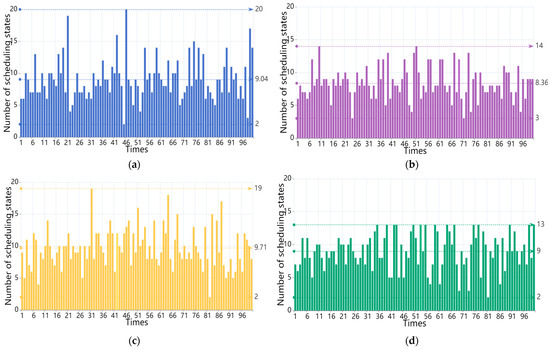 We choose the number of scheduling states T as the first metric, which can be used as a basis for the information entropy and the trend of the information entropy change. In addition, it can be used as a basis for analyzing metric normalization in comparison with other scheduling algorithms. See Section 5.