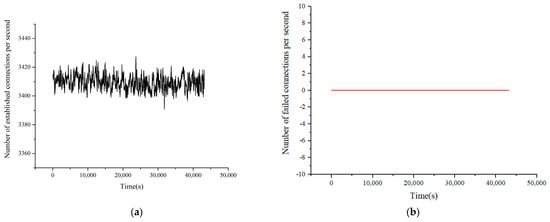 Results of connections per second. (a) Number of established connections per second. (b) Number of failed connections per second.