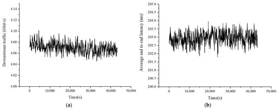 Results of traffic. (a) Results of downstream traffic. (b) Results of average latency.