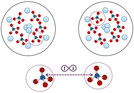 Furthermore, experiments on Posner clusters have been conducted to provide insights into their properties, but their coherence has not yet been studied experimentally [92,93,94,95,96]. Theoretical studies have also been conducted to model the system using a Hamiltonian framework and incorporating environmental noise and some quantum information measures such as concurrence. These studies model Posner molecules with six interacting spins, one for each phosphate molecule. The spin Hamiltonian describes these interactions, considering the symmetry of the Posner molecule and examining various configurations. They use concurrence to analyze entanglement within the spin system [97,98,99]. Another study approaches it from a quantum computing and information perspective, interpreting each step in Fisher’s proposal as a quantum computing operation, though it does not involve environmental factors [100].