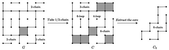 is a subset component of G. It includes the following components of G: its loops consist of all loops of , and its chains are either all chains of (if any exist) or the 3-chain (if G contains one and no other chains). Furthermore, the symbol denotes the number of 3-chains in . The functions , , and are defined as follows: , , and . In the presented formula, indicates that the operation is applied iteratively times, where corresponds to the number of 4-loops within G. Likewise, and denote the iterative application of the and operations and times, respectively.
