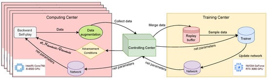 - Silver, D.; Schrittwieser, J.; Simonyan, K.; Antonoglou, I.; Huang, A.; Guez, A.; Hubert, T.; Baker, L.; Lai, M.; Bolton, A.; et al. Mastering the Game of Go without Human Knowledge. Nature 2017, 550, 354–359. [Google Scholar] [CrossRef]
