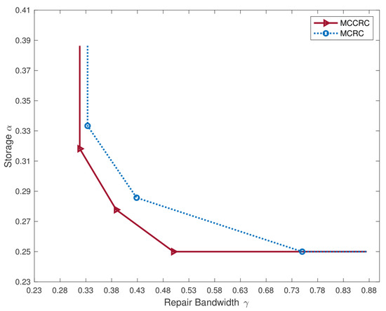 The trade-off between the storage capacity and the repair bandwidth for an MCCRC and an MCRC [13].