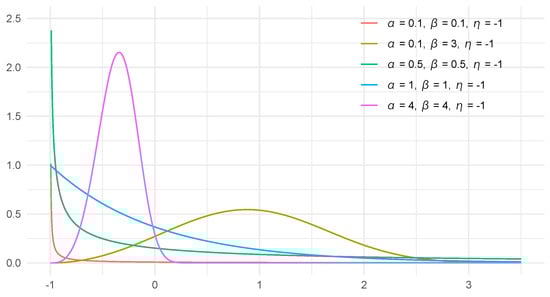 The three-parameter Weibull distribution reduces to the two-parameter (i.e., conventional) Weibull distribution when . Figure 2 illustrates the PDFs in Equation (1) when .