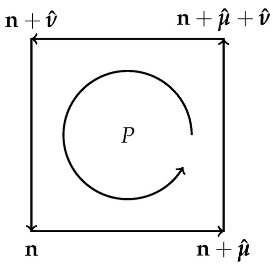 To define LGT, we need, in addition to the vertices and links (nearest neighbor pairs) encountered in the previous section, the so-called plaquettes of the lattice: a plaquette is an oriented elementary square of the lattice, i.e., the simplest closed loop made from for links (see Figure 2). Denoting by the unit vector on the lattice in direction , we define a lattice gauge field as a map from the links into the gauge group: