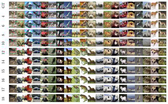 We illustrate the performance of the U-Turn for deterministic samplers in Figure 15 and Figure 16, applied, respectively, to models trained unconditionally (across multiple classes) on CIFAR-10 data and Flickr-Faces-HQ (FFHQ) data, https://github.com/NVlabs/ffhq-dataset (accessed on 10 August 2023).