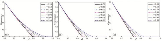 The concurrence for three initial states as the function of the dissipation parameter d with different temperature parameters r. (a) Bell state, (b) Werner state, and (c) general state.
