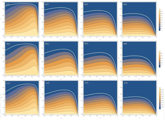 The concurrence for three initial states as the function of WM strength p and the dissipation parameter d with different temperature parameters r. (a1–a4) Bell state, (b1–b4) Werner state, and (c1–c4) general state, ; (L1) , (L2) , (L3) , and (L4) , .