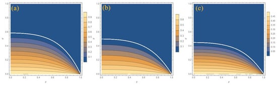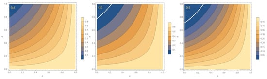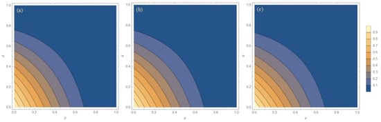 By substituting Equations (12) and (13) into (6), the entanglement of the system with the addition of WMR can also be easily calculated. If under the same temperature and damping parameters, after the implementation of the weak measurement scheme, the concurrence is larger than that without implementation, it is considered that the weak measurement scheme can improve the entanglement of the system, that is, it has played a protective effect. In order to maximize the recovery of the entanglement, we cleverly borrow the mathematical formula from Appendix E of Ref. [32], and we fix the weak measurement strength p and maximize concurrence by varying the measurement reversal strength q. Since the measurement reversal strength q appears only in the denominator, P, we turn to minimize the success probability P by adjusting the measurement reversal strength q, which establishes the relationship between the weak measurement strength p and the measurement reversal strength q, and optimize the entanglement of the system. Based on the theoretical calculation results, Figure 3 shows the concurrence for three initial states as the function of the WM strength p and the dissipation parameter d with different temperature parameters r after the WMR operation. In Figure 3, the entanglement corresponding to a weak measurement strength p equalling zero is the entanglement of the system without the implementation of the WMR scheme. It can be seen from the longitudinal comparison in Figure 3 that the three initial states have the same variation trend with the WM strength p and the dissipation parameter d, and there are only differences in value. The horizontal comparison shows that with the increase in the temperature parameter r, the protective effect of WMR becomes weaker. If the temperature continues to rise, the entanglement will decrease with the increase in the weak measurement strength p, as shown in Figure 4, so that the weak measurement scheme will not play a protective role, and even WMR will have the opposite effect. Therefore, when operating the experiment, a low-temperature environment is selected as far as possible to maximize the protection effect of WMR to maintain the entanglement of the system.