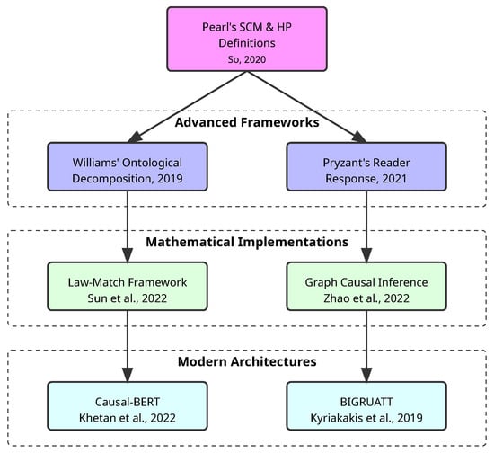 Reviewing the citation trends alongside the clusters in Table 1 clarifies why certain methodological innovations (e.g., Causal Representation Learning [] or Graph-Based Causal Inference []) may gain traction in legal NLP. Works that achieve high citation counts often introduce tools or corpora (e.g., large pretraining datasets, specialized benchmarks) that subsequent research employs to tackle causal questions in contract analysis, criminal justice, and policy simulation. In other words, while the table enumerates distinct causal techniques for legal text analysis, their real-world uptake is frequently accelerated when grounded in widely embraced, high-performance language models—facilitating an intersection of advanced representation learning and causal methods. The synergy between large-scale pretrained models [,,] and targeted causal inference practices underscores the growing maturity and sophistication of the field, suggesting that future high-impact publications will likely continue to integrate domain-specific language modeling with rigorous causal frameworks.