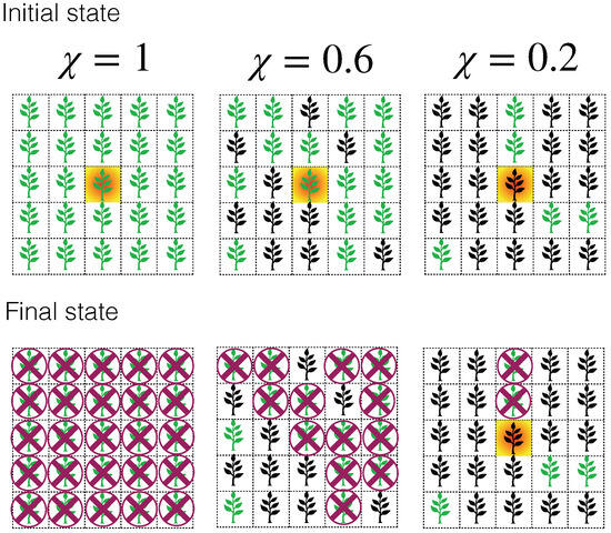 - Ramírez, J.E.; Molina-Gayosso, E.; Lozada-Lechuga, J.; Flores-Rojas, L.M.; Martínez, M.I.; Fernández Téllez, A. Percolation strategy to improve the production of plants with high pathogen susceptibility. Phys. Rev. E 2018, 98, 062409. [Google Scholar] [CrossRef]