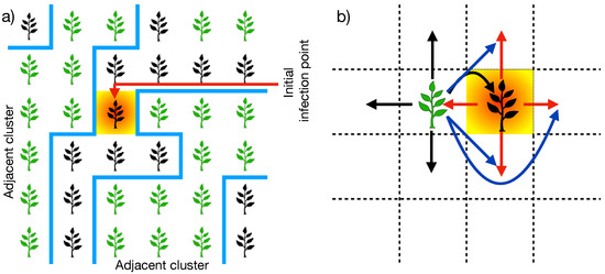 - Rosales Herrera, D.; Ramírez, J.E.; Martínez, M.I.; Cruz-Suárez, H.; Fernández Téllez, A.; López-Olguín, J.F.; Aragón García, A. Percolation-intercropping strategies to prevent dissemination of phytopathogens on plantations. Chaos 2021, 31, 063105. [Google Scholar] [CrossRef]