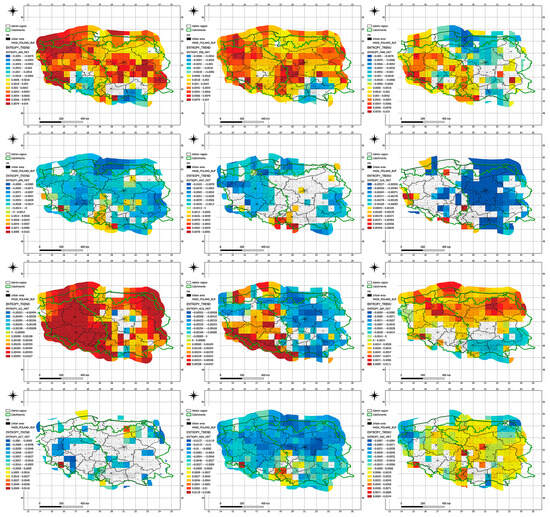Calculating informational entropy based on temperature and precipitation distributions enables a deeper understanding of structural changes in the climate system [18,19]. This is particularly important since traditional statistical methods often fail to capture shifts in variability and randomness within climate data [6,20]. Monitoring entropy over long time series allows the identification of regions particularly vulnerable to climate change—for example, areas at risk of more frequent droughts or heavy rainfall. An upward trend in entropy indicates growing instability and unpredictability in climate behavior and can serve as a basis for long-term forecasting of extreme events. Such analyses are especially valuable for projecting future patterns of temperature and precipitation, which is crucial for water resource management, urban climate adaptation, meteorological risk assessment (e.g., heatwaves, severe storms, thermal anomalies), and the development of adaptation strategies in sectors such as agriculture, forestry, and critical infrastructure [21,22].