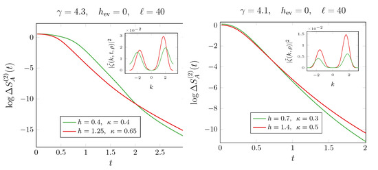 - Calabrese, P.; Cardy, J. Evolution of entanglement entropy in one-dimensional systems. J. Stat. Mech. Theory Exp. 2005, 2005, P04010. [Google Scholar] [CrossRef]