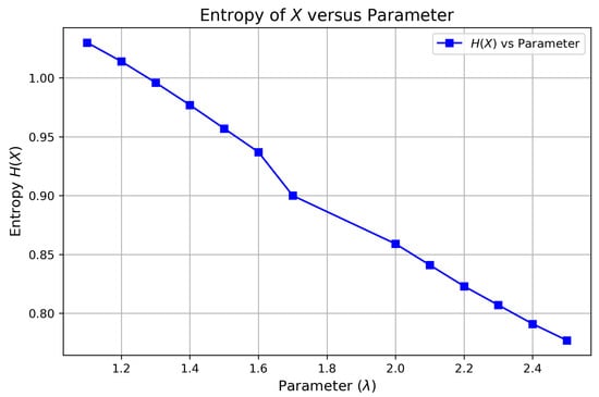 Entropy measures the fluctuation in the uncertainty in physical systems. The Shannon entropy is a well-known entropy measurement []. In this section, we obtain the discrete Shannon entropy of a random variable. The entropy of a discrete random variable X, with its probability mass function (pmf), is given by Equation (7):