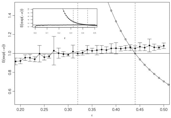 In an empirical study of the LSE data set conducted in [35], it was shown that the mean and the variance evolve over time following the same power law (Figure 1 in [35]). Here, assuming , it follows from the above equation that the functions and are power functions with the same exponent. Furthermore, two relationships can be derived as follows: