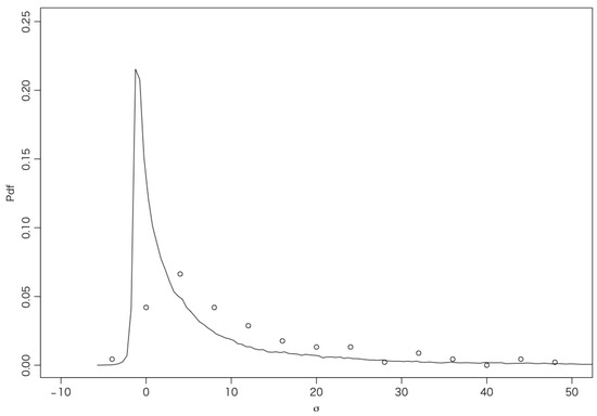 The value of the parameter is also unknown. In [35], parameter estimation was carried out using the conditional moments and . However, this approach results in large errors when sufficient data are not available and thus was not adopted here. Instead, we used the following simplified method. By comparing the expression for the scaling exponent for the case with the empirical result reported in Figures 2 and 11 in [35], we fix . Thus, the parameters are not fully optimized.