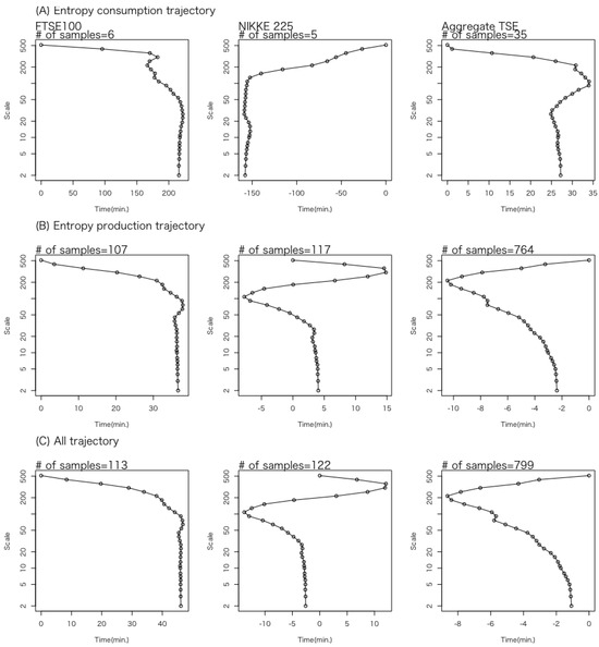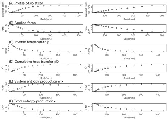 Figure 3 illustrates the results of two types of parameter estimation. The maximum time scale (initial state) of the trajectory is set to 512 min (approximately one trading day), and the minimum time scale (final state) is set to 32 min.