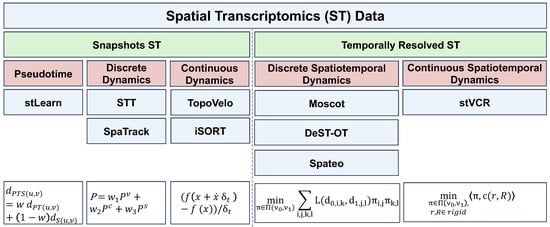 - Halmos, P.; Liu, X.; Gold, J.; Chen, F.; Ding, L.; Raphael, B.J. DeST-OT: Alignment of Spatiotemporal Transcriptomics Data. bioRxiv 2024. [Google Scholar] [CrossRef]