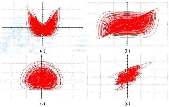 The projections of the attractors on different planes were plotted through MATLAB software 24.2 simulations, as shown in Figure 1.
