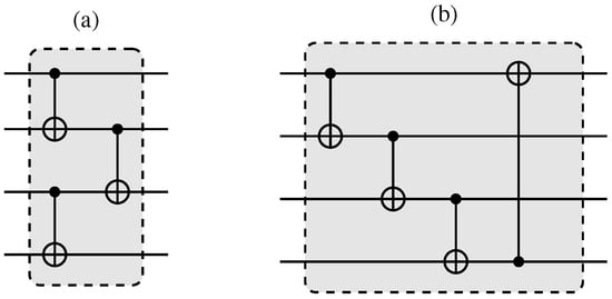 b), here named “entanglement layer 2”, the qubits are entangled in a cascade. Adapted from [