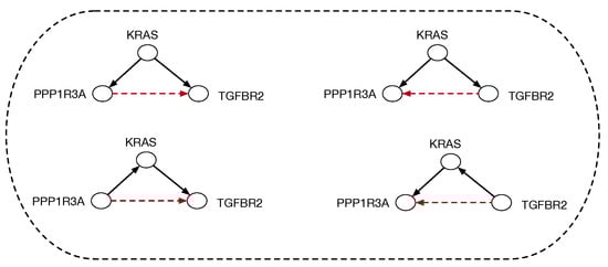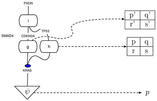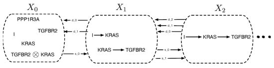 Table 1 illustrates the general type of data that is available for many types of cancer, including colorectal cancer, pancreatic cancer, primary gliolastoma, etc. The values in the table indicate whether a particular gene was mutated in a specific instance of a tumor. There is generally a partial ordering that defines the allowable sequences of mutations that are observed in many types of cancer. It is not the case that mutations occur in any order, and in most cancers, it is usually the case that the mutations form particular types of sequences. Modeling these posets through a causal model has been extensively studied in the literature [34,38]. We discuss one specific case study of pancreatic cancer, which has been explored in our previous work and will be used to illustrate the causal cPROP framework studied in this paper [35].