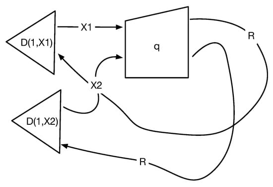 Note that if , then according to Equation (7), the first term above must equal 0. Alternatively, if , then the reason is that the combined cost of manufacturing and transportation exceeds the demand price ; hence, the inequality is again satisfied. We can view each equilibrium condition above as a submodel , and there will be one such submodel for each producer and consumer. The number of submodels is equal to the number of trade paths, which collectively define the overall vector field mapping F. We can now model causal interventions in this system, such as raising or lowering prices, as inducing a modified model , and analyze the effect of these causal interventions on the equilibrium trade between producers and suppliers. If we view the imposition of tariffs as a causal intervention, then the previous equilibrium solution of the network economy reflected in the amount of goods sold from producers to consumers and shipped via transporters will change, as recent events have shown. The causal intervention now requires recomputing a new solution to the multiplayer game represented by the network economy.