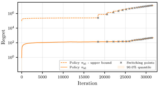 - Cappé, O.; Garivier, A.; Maillard, O.A.; Munos, R.; Stoltz, G. Kullback-leibler upper confidence bounds for optimal sequential allocation. Ann. Stat. 2013, 41, 1516–1541. [Google Scholar] [CrossRef]