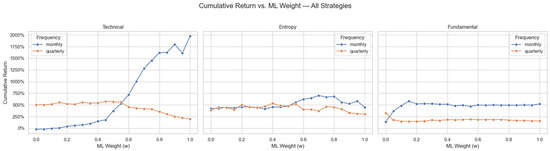 | Strategy | Frequency | ML Weight | Sharpe | Average Return | Volatility | Cumulative Return |