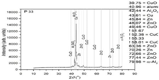 The XRD analysis was primarily qualitative. However, peak intensities were evaluated in relative terms to assess phase fraction tendencies. No full Rietveld refinement was performed; however, indexing was carried out using standard ICDD cards to identify the present main phases. In further studies, quantitative refinement techniques may be included in order to improve the resolution of minority phases.