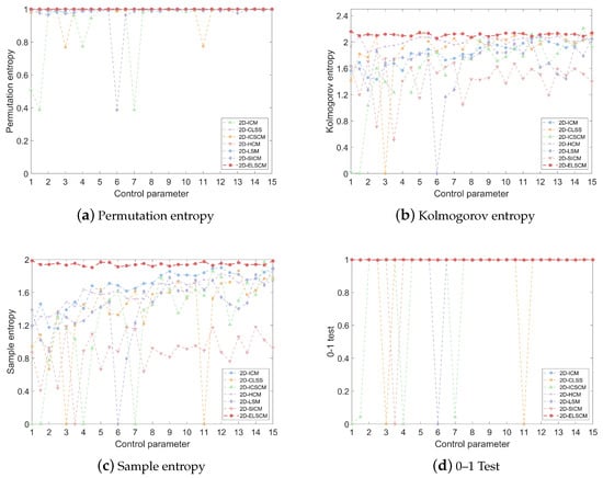 Furthermore, the average KE values summarized in Table 4 further underscore the superior performance of the 2D-ELSCM. The table illustrates that the proposed map generates chaotic sequences with the highest complexity among those analyzed. This demonstrates that the 2D-ELSCM is not only more chaotic but also capable of offering stronger resistance to attacks, thereby enhancing its effectiveness in cryptographic systems.