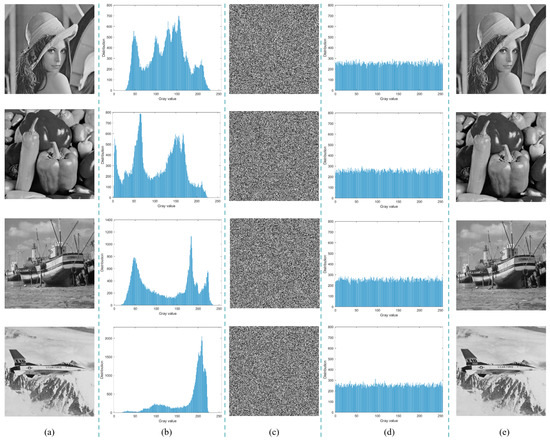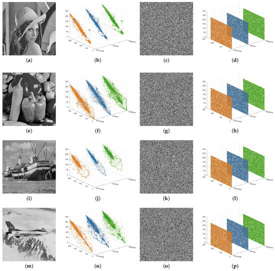 (iii) The decryption of both ciphertext sets is carried out using , resulting in decrypted images and (). The values are then evaluated to verify the algorithm’s sensitivity during decryption.