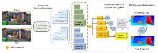 - Huang, H.; Zhang, Y. CostVolume Transformer: A Transformer-Based Stereo Matching Framework. IEEE Trans. Pattern Anal. Mach. Intell. 2024, 46, 12345–12356. [Google Scholar]