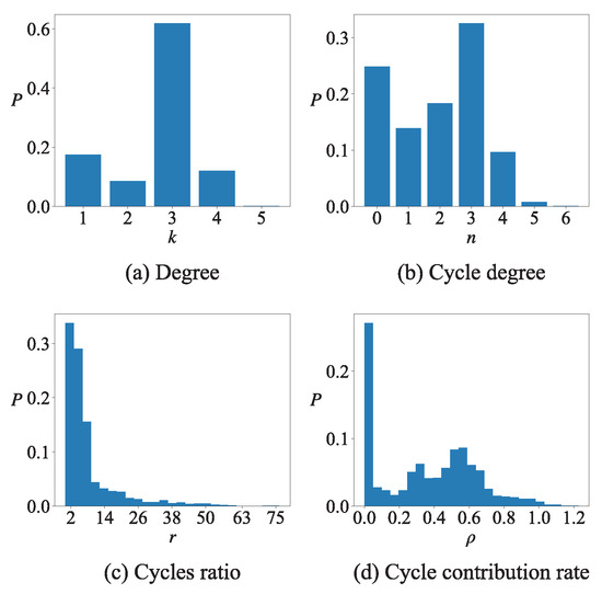 32]. To address this gap, we conducted a detailed analysis of urban road networks using motif methods and obtained the Z-scores for various motifs. The results revealed that motifs with cycles exhibited positive Z-scores, indicating that their frequency of occurrence was significantly higher than in random networks with the same degree sequence. In other words, cycles are ubiquitous in urban road networks, and thus they can serve as fundamental building blocks for studying urban road systems.