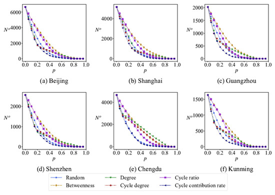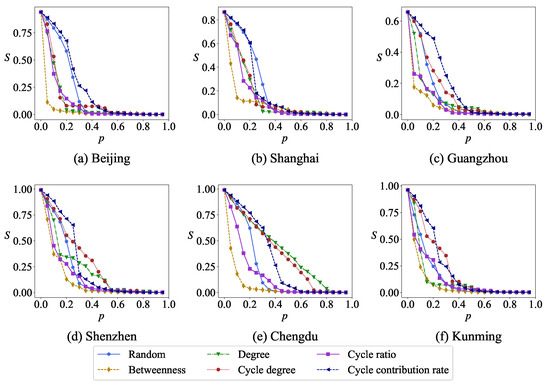 Regarding the resilience of urban transportation systems, the following key findings have been validated. Firstly, the adoption of different attack strategies has a significant impact on network robustness. Liu et al. [