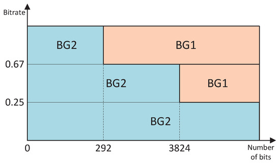An encoding method with rate compatibility must allow different redundancy versions (RVs) to be generated by selecting check bits from the parent code as needed without redesigning, that is, the set of check bits of any subcode must be a subset of the parent code, and the lower code rate version contains all the check bits of the higher code rate version [34]. LDPC codes achieve different code rates by puncturing in the same codeword (base code). The bit positions read from LDPC codes must be integer multiples of the spreading factor z to achieve rate matching.
