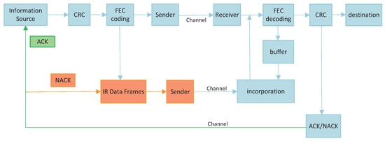 Existing solutions to improve reliability in the field of communication mainly involve the introduction of error control techniques, which mainly include ARQ, FEC, and HARQ [20]. Error control technology is that the sender side will resend data when the system transmits data in error. ARQ technology is simply retransmitting data. However, the system will not allow unlimited transmissions and will set the maximum number of retransmissions in advance. It is also possible for the system to compare the content of several retransmissions and check the content after they have been combined in order to find the correct ones as soon as possible.