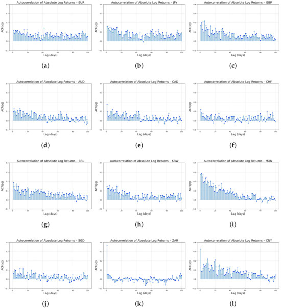 In summary, although the daily log returns of these 12 major and minor currency pairs are characterized by average values that approximate zero, there are significant differences in terms of extreme returns, volatility, skew, kurt, and normality as indicated by the J.-B. test. Notably, the ZAR and the BRL are distinguished by their high volatility and an increased propensity for experiencing extreme return values.
