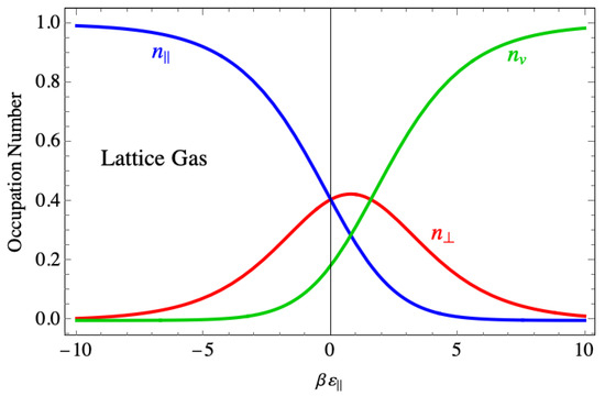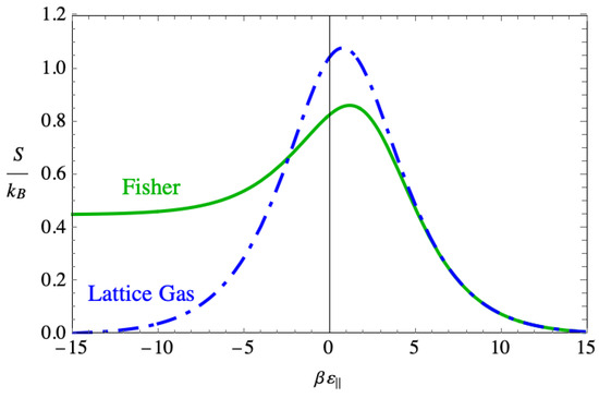 Since is contained in the activities r and b, , and similarly for b. Inserting the explicit form of the partition function yields the entropy per site of the two-color lattice gas,