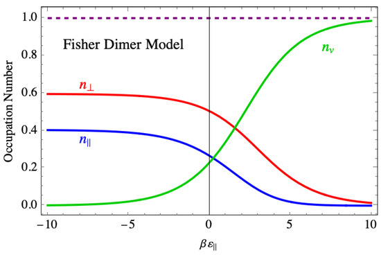 Fisher’s dimer model describes dimers adsorbed on a two-dimensional lattice. Eventually, we will take the limit in which the lattice becomes large, and for that reason, it is useful to express the quantities as energy per lattice site and entropy per lattice site. Therefore, it is more reasonable to consider the entropy per site and the number of particles of a given type per site, which is the occupancy per site. It is then helpful to define the logarithm of partition function per site as