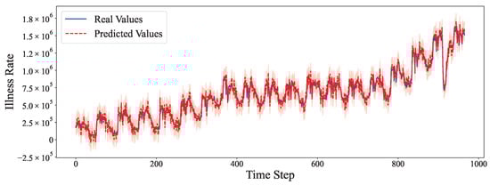 To summarize the horizon analysis, short-term forecasts benefit from the accurate local linear extrapolation of ARIMA, with the deep network fine-tuning small details, resulting in very high accuracy in that regime. Long-term forecasts are where the deep learning module’s strength becomes crucial—it provides a form of memory and nonlinearity that ARIMA lacks, thereby slowing down error accumulation over time. In all cases, the hybrid model’s error grows with the horizon but more gracefully than a linear model’s error would. If we denote as the error of ARIMA at horizon h and as that of the hybrid, typically, we observed for all h, and the relative gap often widened for a larger h on datasets with identifiable patterns. For instance, for the Traffic data at h, both ARIMA and Hybrid have very low errors, but by (one week), the MSE of ARIMA was roughly 1.5 times higher than the Hybrid’s MSE, indicating the advantage of the nonlinear residual corrections. In contrast, for Exchange Rate, for large h (both high), while for Illness, stayed significantly below , even at weeks. These results underscore the fact that the hybrid model is broadly effective for long-term forecasting when the time series contains recurring structures or nonlinear effects that a learning model can latch onto. The combination of ARIMA and deep learning thus provided a robust solution across different forecasting horizons, achieving the best of both worlds: reliable short-term predictions and improved long-term foresight.
