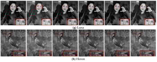 Figure 5 shows the visual effects of the different methods in reconstructing high-resolution images when the total sampling rate . Overall, the proposed method has better visual effects with all test images. For more complex parts of these images, the proposed method often achieves better reconstruction quality than the other methods. Simultaneously, a relatively consistent reconstruction quality can be achieved for both the texture blocks and the smooth blocks, and the blocking effect is not obvious. This can be illustrated from another aspect: the proposed method can identify smooth blocks and texture blocks well and assign them reasonable sampling rates.